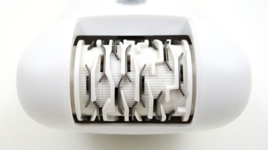La testina dell’epilatore è essenzialmente un cilindro rotante dotato di piccole pinzette metalliche che si aprono e chiudono durante la rotazione. Quando le pinzette si stringono sui peli e li tirano verso l’altro durante la rotazione del cilindro, il pelo viene sradicato dalla tua pelle.