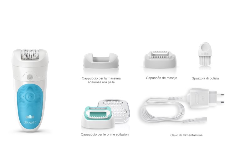 Quando scarti la confezione del tuo nuovissimo Silk Epil 5 Wet & Dry, ecco cosa troverai all’interno: